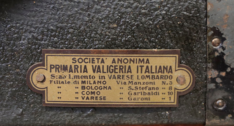 Italian coated canvas-clad steamer trunk, early 20th c., iron strapping, lined and fitted interior with hanging storage, drawers, interior plaque reading Societa Anonima Primaria Valigeria Italiana, exterior with remnants of old travel and shipping labels, loss to one brass latch, approx 55.5"h, 22"w, 21.5"d
